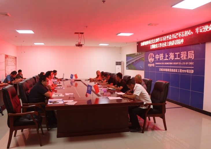 ??6月17日,宣城市陽德路道路建設工程ppp項目黨支部開展“學習習近平總書記‘不忘初心、牢記使命’主題教育工作會議上的講話精神”專題黨課。項目黨組織負責人主持學習,項目部全體員工參加。