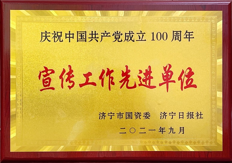 近日,公司榮獲濟寧市國資委、濟寧日報社聯合授予的“慶祝中國共產黨成立100周年宣傳工作先進單位”稱號。...