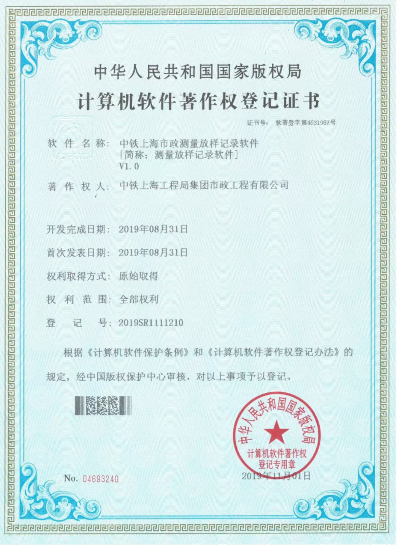 近日,從國(guó)家版權(quán)局傳來(lái)喜訊,公司技術(shù)創(chuàng)新工作又獲新突破!公司自主研發(fā)的“中鐵上海市政測(cè)量放樣記錄軟件”“中鐵上海市政基于ProStructures鋼筋計(jì)量軟件”通過中國(guó)版權(quán)保護(hù)中心審核,獲得國(guó)家版權(quán)局計(jì)算機(jī)軟件著作權(quán)授權(quán),并取得了著作權(quán)登記證書。...