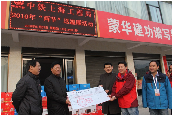 回到項目駐地,梁書記表達了集團公司黨政工團對戰(zhàn)斗在施工一線的干部職工和農(nóng)民工的衷心感謝和祝福,隨后梁書記代表集團公司向項目送上5萬元慰問金,并把電暖器、棉被、牛奶等慰問品發(fā)到每個員工手里。梁書記表示,蒙華鐵路項目作為股份公司重點關(guān)注項目,集團公司高度重視項目各項工作的開展情況,希望全體項目管理人員能夠始終堅持高標準、嚴要求,認真部署,優(yōu)質(zhì)高效地完成各項計劃目標,為集團公司樹立良好品牌形象而不斷努力。