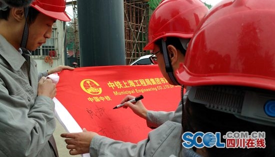 成都地鐵7號線二標(biāo)正在緊張施工,作為該標(biāo)段施工企業(yè)中鐵上海局21日啟動了“首屆廉潔文化宣全周”活動。現(xiàn)場,還進(jìn)行了廉潔從業(yè)承諾簽名。